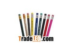 Round or Hexagon shape shank with and without eraser head, 8.9cm in length custom logo imprinting is provided. -Colors:Dark Green, Red, Black, Yellow, Orange, Pink, Blue, Gold, Purple, White etc